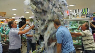 O sorteio foi às 11 horas deste sábado, dia 04/03/2017, no supermercado da Cooper A1 em Palmitos, SC. O cupom continha todas as informações preenchidas corretamente e foi auditado pela Caixa Econômica Federal. O sorteio foi acompanhado pelo presidente da Cooper A1, Elio Casarin, gerentes de atividades e das unidades da cooperativa, bem como por cooperados e clientes. Este foi o quinto e último sorteio da promoção que iniciou em outubro de 2016, junto com a Nova Revista Cooper A1. Nas cinco primeiras edições, de outubro de 2016 a fevereiro de 2017, havia o cupom de participação anexo à revista. Além disso, a partir de R$ 200 em compras, cooperados e clientes recebiam um cupom. Ao todo, 74 pessoas, de toda região forma contempladas com prêmios. Além do carro foram sorteados celulares, notebooks, televisores, vale-compras que somam o valor de R$ 100 mil. Veja a lista completa dos ganhadores aqui.