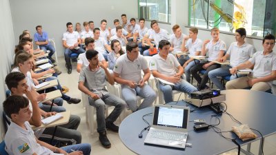 A unidade industrial da Cooper A1 de Palmitos, SC, abriu as portas para a turma do segundo ano do curso de técnico em agropecuária da Casa Familiar Rural de Riqueza. Os 35 alunos tiveram a oportunidade, no dia 17/08, de fazer uma visita-aula, a moderna planta industrial voltada a produção de rações de bovinos de leite.