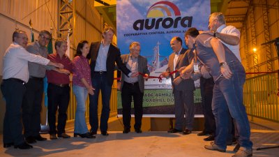 A Cooperativa Central Aurora Alimentos inaugurou, nessa semana, a unidade armazenadora de grãos, em São Gabriel do Oeste (MS). A obra, com investimentos da ordem de 21,5 milhões de reais, está localizada no quilômetro 609 da rodovia federal BR-163 e amplia a capacidade de armazenamento de grãos na região central do Brasil com a construção de quatro silos (de um conjunto de oito projetados).