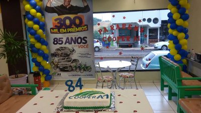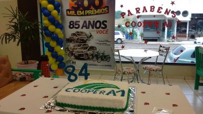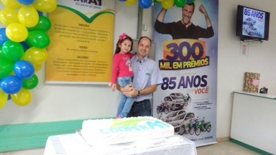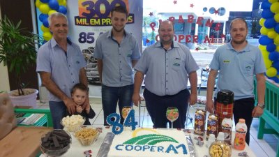 O sábado, 30/09, foi de comemoração na Cooper A1. Todas as 18 unidades festejaram, de forma simultânea, o aniversário de 84 anos da instituição completados no domingo, 1º de outubro, bem com o lançamento da promoção ‘300 mil em prêmios para comemorar 85 anos com você’. A promoção de prêmios, maior realizada até hoje pela cooperativa, vai sortear durante 11 meses, até a véspera do aniversário da cooperativa, em de 2018, mais de 300 prêmios, além de carros e motos 0 Km todos os meses.