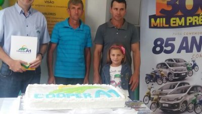O evento também marcou o lançamento da promoção ‘300 mil em prêmios para comemorar 85 anos com você’. O início da promoção, abriu as comemorações dos 85 anos da cooperativa, que serão completados em outubro de 2018. Com 9 motos 4 carros e mais centenas de prêmios sorteados todos os meses, será a maior promoção da história da cooperativa. Serão mais de 300 mil reais distribuídos aos cooperados e clientes através de prêmios. O presidente da Cooper A1, engenheiro agrônomo Elio Casarin destaca: “Planejamos algo especial para iniciarmos as comemorações das oito décadas e meia desta cooperativa, que serão completadas em outubro de 2018. Com esta promoção toda comunidade poderá ser envolvida e presenteada. Nosso objetivo é fortalecer ainda mais os laços com as milhares de pessoas que gostam da Cooper A1 e acreditam no cooperativismo”.Como participar?