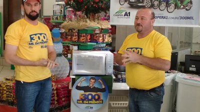 Nesta sexta-feira, dia 24/11, teve sorteio dos 24 micro-ondas da ‘Promoção 300 mil em Prêmios’, promovida pela Cooper A1. Os sorteios foram realizados de forma simultânea em todas as 18 unidades da cooperativa, em Santa Catarina e Rio Grande do Sul.