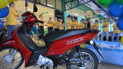 A primeira moto 0 km da ‘Promoção 300 mil em Prêmios’ já tem seu ganhador. É Silverio Alexius, da Linha Barra Grande, interior de Palmitos, SC. O sorteio foi neste sábado, dia 25/11, às 10 horas na matriz, em Palmitos. Participaram da apuração os cupons depositados nas urnas em novembro, nos 18 municípios com unidades da cooperativa. O ganhador foi informado pela Cooper A1 e poderá retirar seu prêmio já na próxima semana. Já na sexta-feira, dia 24/11 foram sorteados entre todas as 24 micro-ondas.