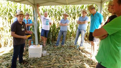 Demonstração de híbridos em Palmitos A empresa Morgan Sementes e Biotecnologia realizou em Palmitos, SC, nos dias 13 e 14 de dezembro “Morgan em campo”, um dia de campo, para apresentar seu portfólio de híbridos, as tecnologias possíveis para a cultura do milho, além do sistema de alta produção da semente. Cerca de 250 pessoas passaram pelo evento nos dois dias. Os produtores eram recepcionados em frente a fábrica de ração da Cooper A1 e depois encaminhados até o interior para as lavouras demonstrativas montadas pela empresa. Dia de campo em Erval Seco foca na produção de silagem de milho Para promover difusão técnica e maior conhecimento das sementes, a empresa Syngenta em parceria com a Cooperativa A1, promoveu na última quarta-feira, dia 13 de dezembro, uma tarde de campo na propriedade do Senhor Leonir Manfio, na cidade de Erval Seco, RS. Aproximadamente 100 pessoas participaram do evento. Com o intuito de levar aos produtores maiores informações sobre silagem e nutrição, o dia de campo teve muita troca de conhecimento entre os envolvidos. Segundo o gerente da unidade de Erval Seco, Heriberto Conte, esses eventos são interessantes para que os cooperados possam tirar suas dúvidas e agregar conhecimento junto aos demais. Tarde de campo foi realizada em Itapiranga na última quarta-feira (13/12) Em Itapiranga, SC, também foi realizada uma tarde de campo no dia 13 de dezembro, na propriedade do cooperado José Eyng. Na oportunidade, houve demonstração de milho da empresa Coodetec com a parceria da Cooperativa A1. Aproximadamente 20 pessoas participaram da atividade para obter maior conhecimento a respeito das variedades de milho.