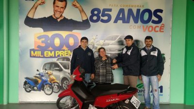 Neste fim de semana conheceremos os últimos contemplados na “PROMOÇÃO 300 MIL EM PRÊMIOS PARA COMEMORAR 85 ANOS COM VOCÊ”. Os sorteios serão na sexta-feira, dia 28, em todas as unidades da Cooper A1, com 20 jogos de panela e 25 vale-compras. E no sábado, dia 29, serão sorteados em frente a unidade e matriz, em Palmitos, SC, um carro Up Take e uma moto Honda Biz 0 km.