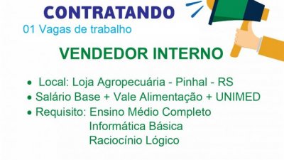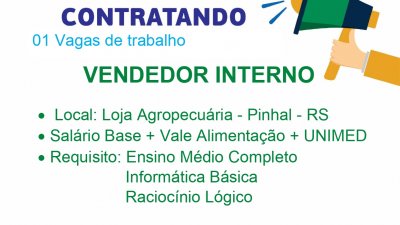 VAGA DE EMPREGO PARA A UNIDADE DE PINHAL, RS