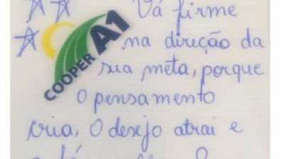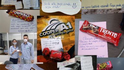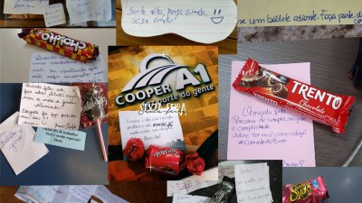 Os sentimentos de cooperação, carinho e amizade tomaram conta da Cooper A1. Desafios inspiradores, simples e singelos foram lançados na cooperativa nestas últimas quinta e sexta-feira, dias 3 e 4/12. Os colaboradores foram convidados a deixarem bilhetes com mensagens de carinho uns anos outros e a cumprimentarem os colegas de forma ainda mais positiva.