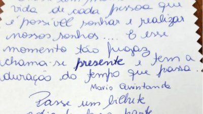 “Gratidão é a palavra que resume. Como é gratificante receber e ouvir palavras de carinho. Lágrimas caíram, de felicidade. Obrigado Cooper A1 por nos inspirar a este gesto tão bonito”, disse uma colaboradora ao compartilhar seu bilhete.
