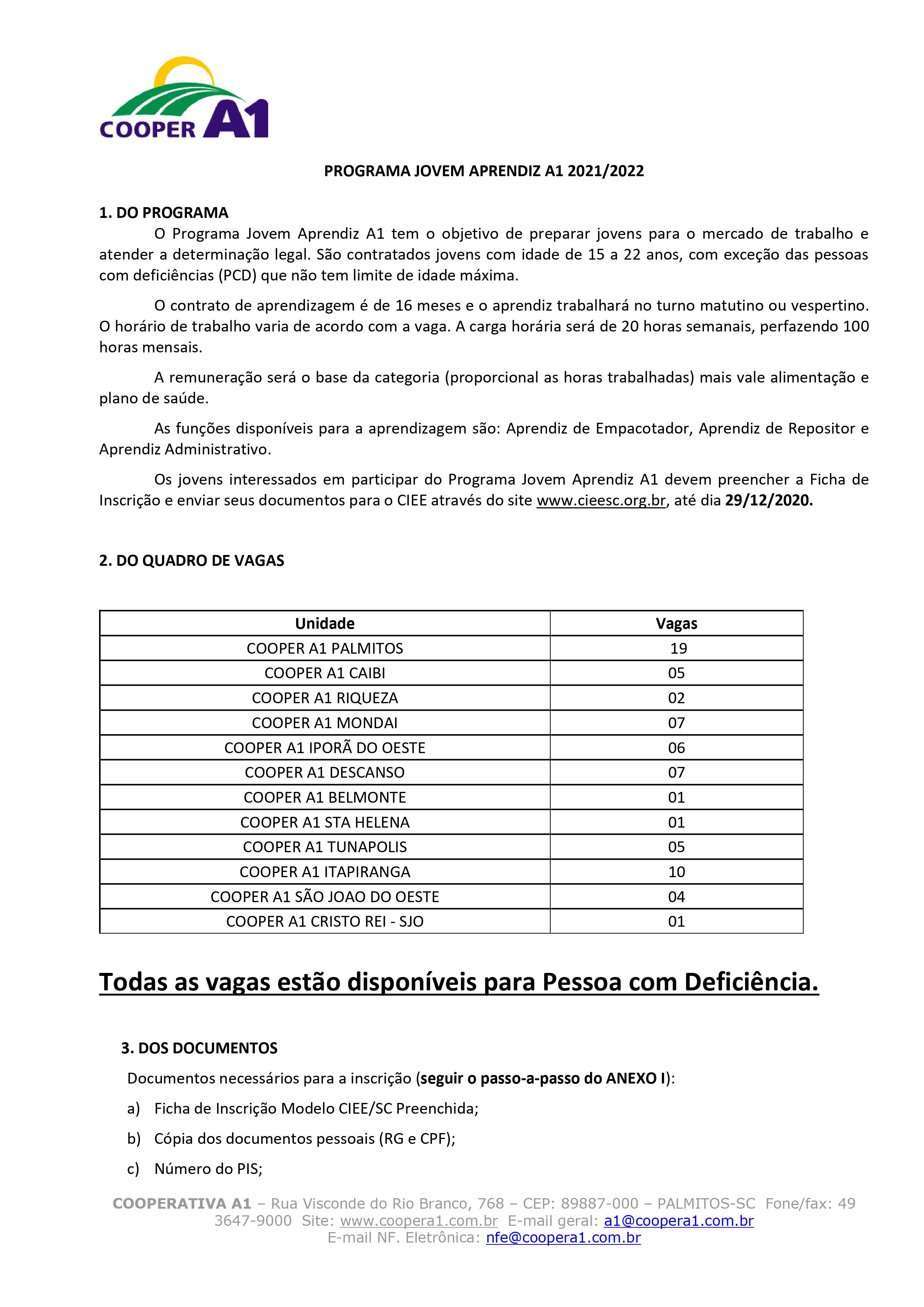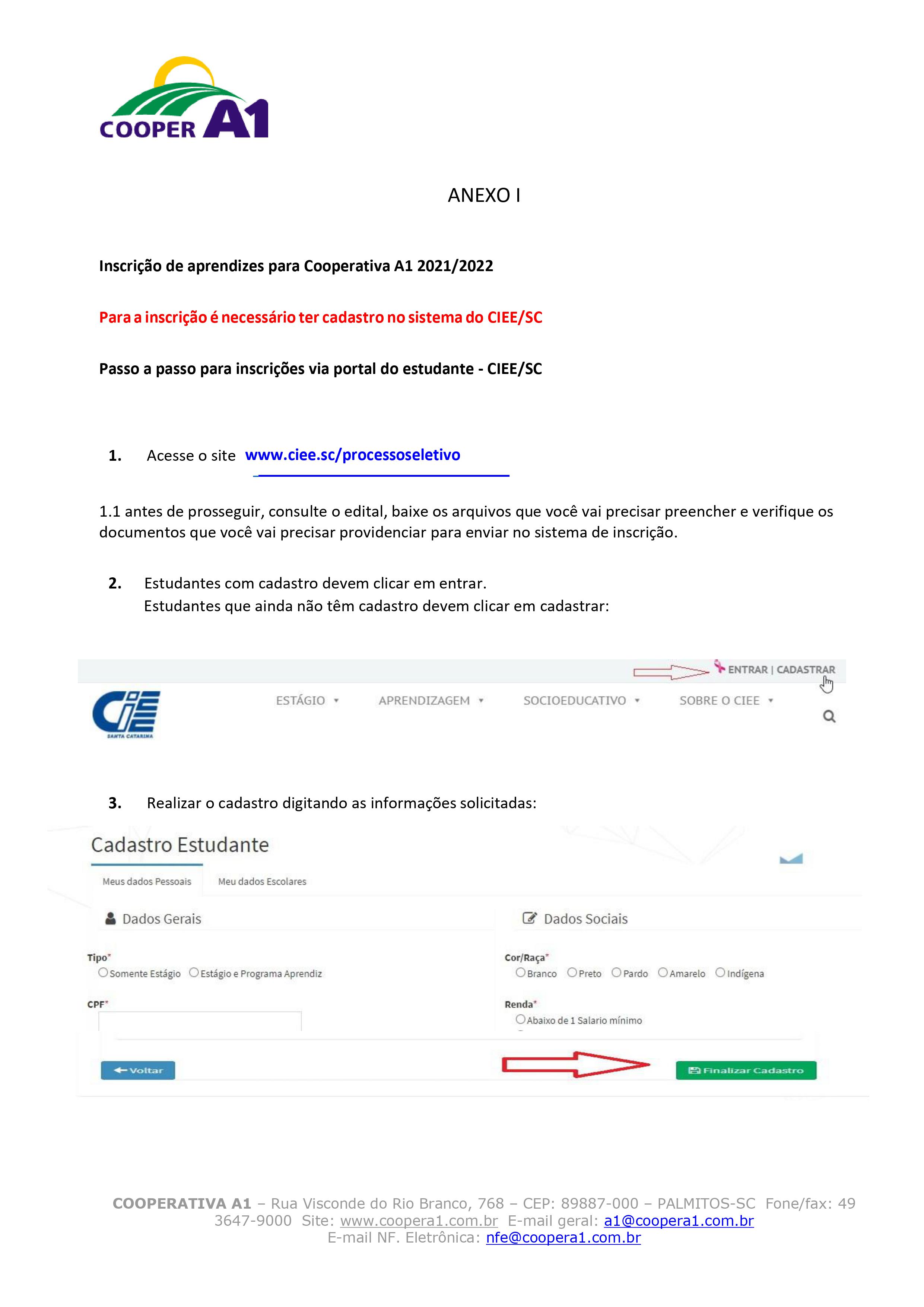 Razão Social: Cooperativa A1 | CNPJ/MF: 03.470.626/0001-50