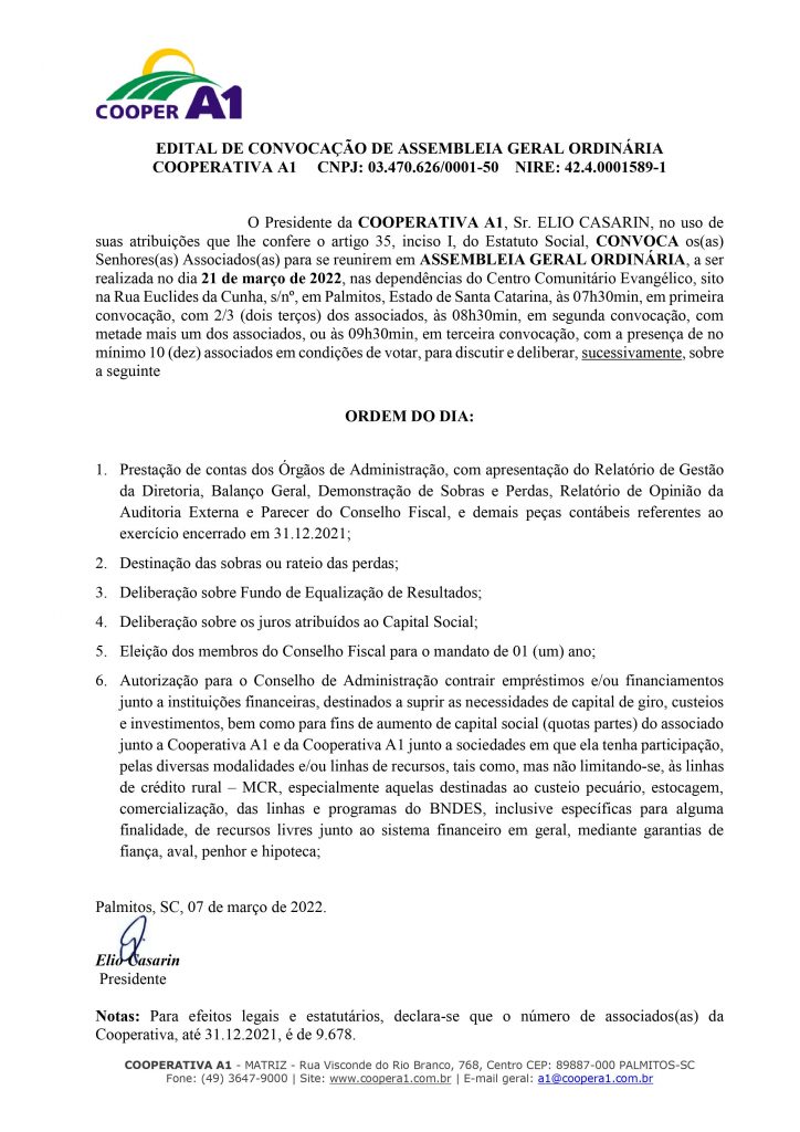 EDITAL DE CONVOCAÇÃO: AGO 2022