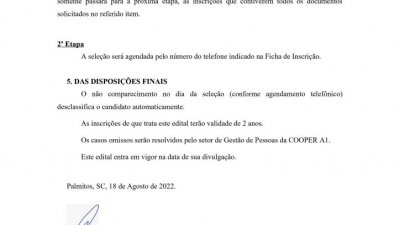 EDITAL: Seleção de aprendiz para Erval Seco/RS