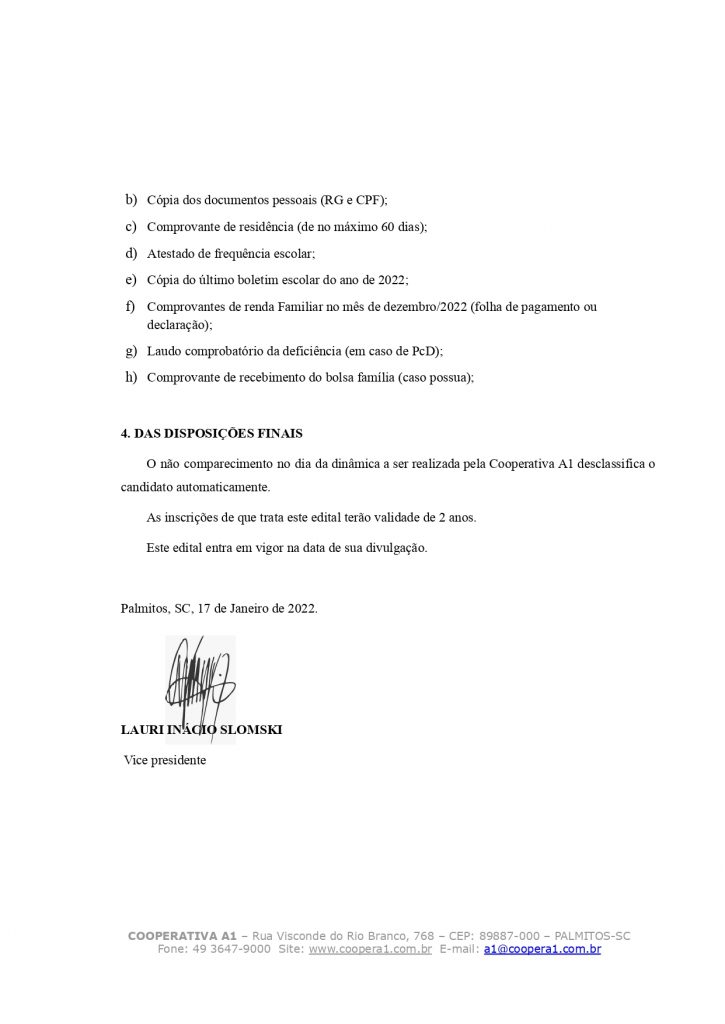 Razão Social: Cooperativa A1 | CNPJ/MF: 03.470.626/0001-50