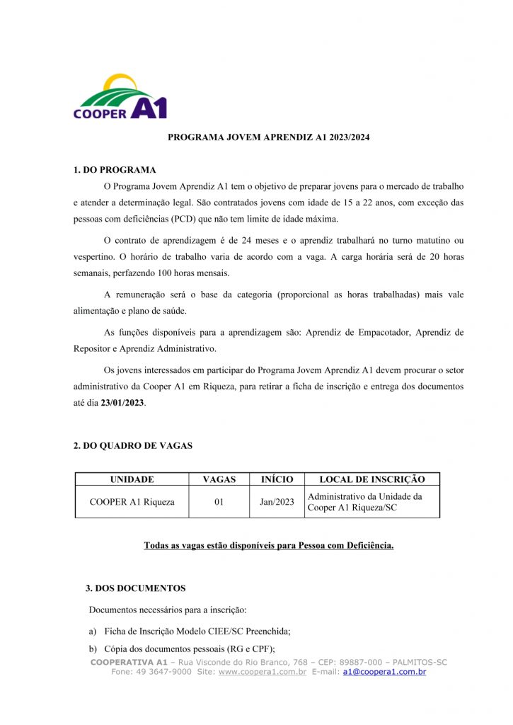 EDITAL JOVEM APRENDIZ PARA RIQUEZA/SC