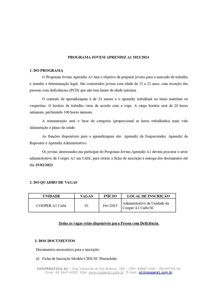 EDITAL JOVEM APRENDIZ CAIBI/SC