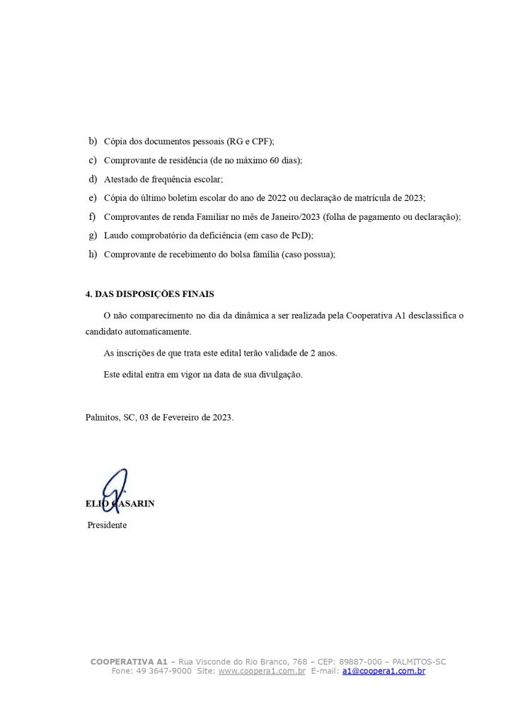 Razão Social: Cooperativa A1 | CNPJ/MF: 03.470.626/0001-50