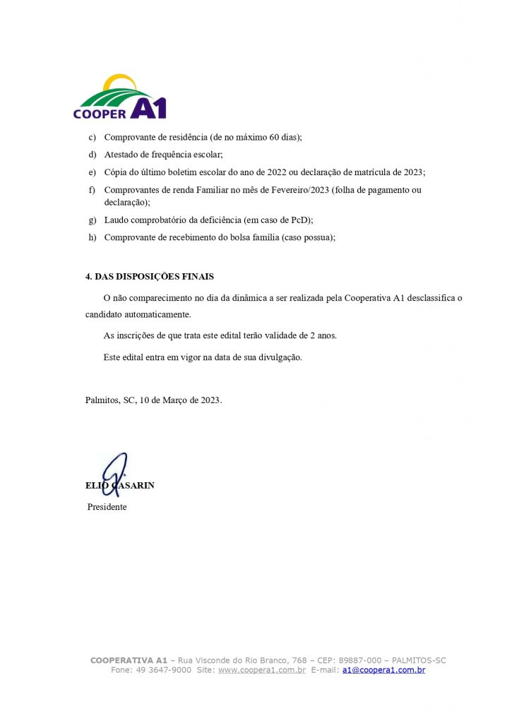 Razão Social: Cooperativa A1 | CNPJ/MF: 03.470.626/0001-50