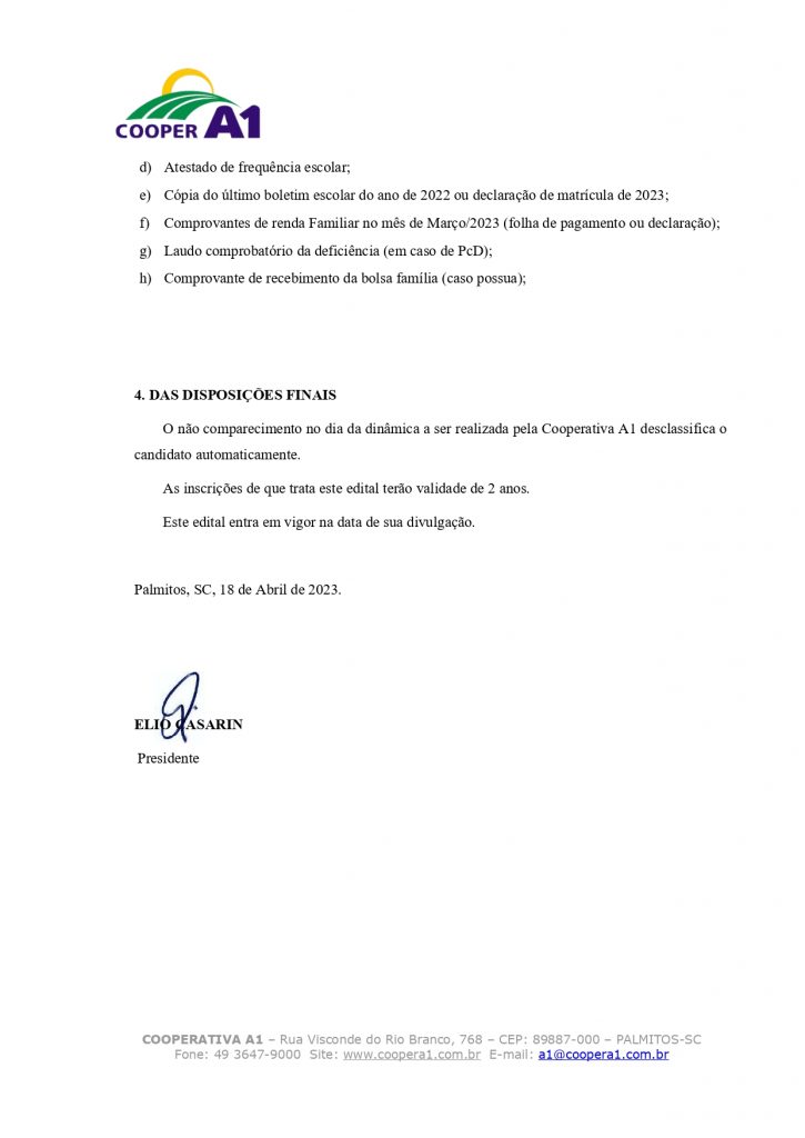 Razão Social: Cooperativa A1 | CNPJ/MF: 03.470.626/0001-50