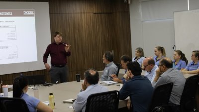 Na quarta-feira (17) diferentes setores da matriz reuniram-se para realizar um treinamento sobre reforma tributária. O momento envolveu setores contábil, fiscal, TI juntamente com a Diretoria Executiva, representantes dos setores financeiro, departamento pessoal, jurídico, controladoria, estoques e compras para tratar sobre a Reforma Tributária.