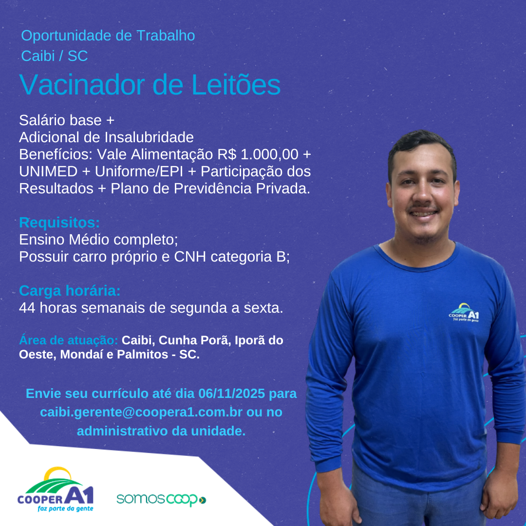 Descrição: Oportunidade para Vacinador de Leitões.